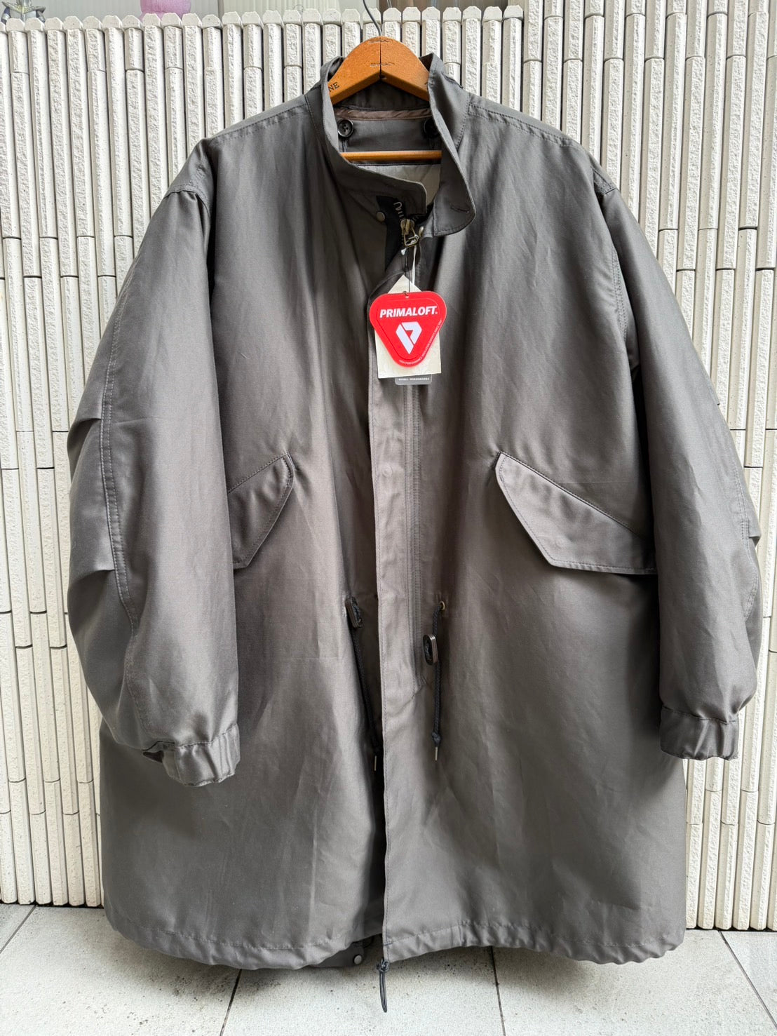 M65パーカタイプ、フードなしプリマロフト入りライナー装備、パリ展示会ではニューヨークからの店舗バイヤーの試着率が高かった。そもそもがゆったりサイジングではありますが、プリマロフトゆえ暖かさは抜群で薄手のインナーでも着用可。