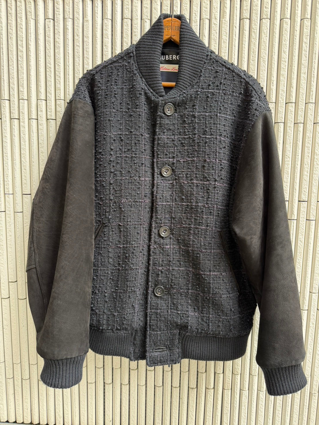 25AWで展開したスタジャン『AWARD』と同型です。これこそ皆様に取り入れていただきやすいデザインとボリュームかと。袖は前出のカーフヌバックでボンディングなしの素材です。そしてそのフィッティングボリュームは決して古着や現行スタジャン専門店では見つからない、あくまでモードなフィットを狙っております。