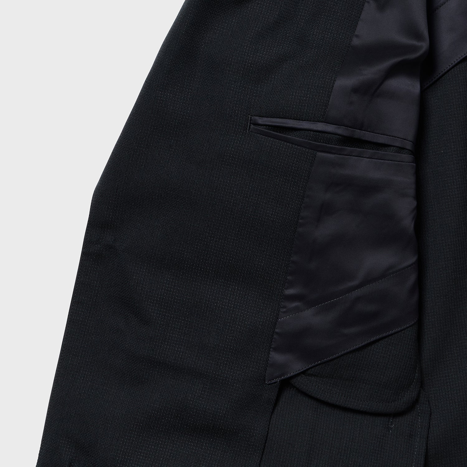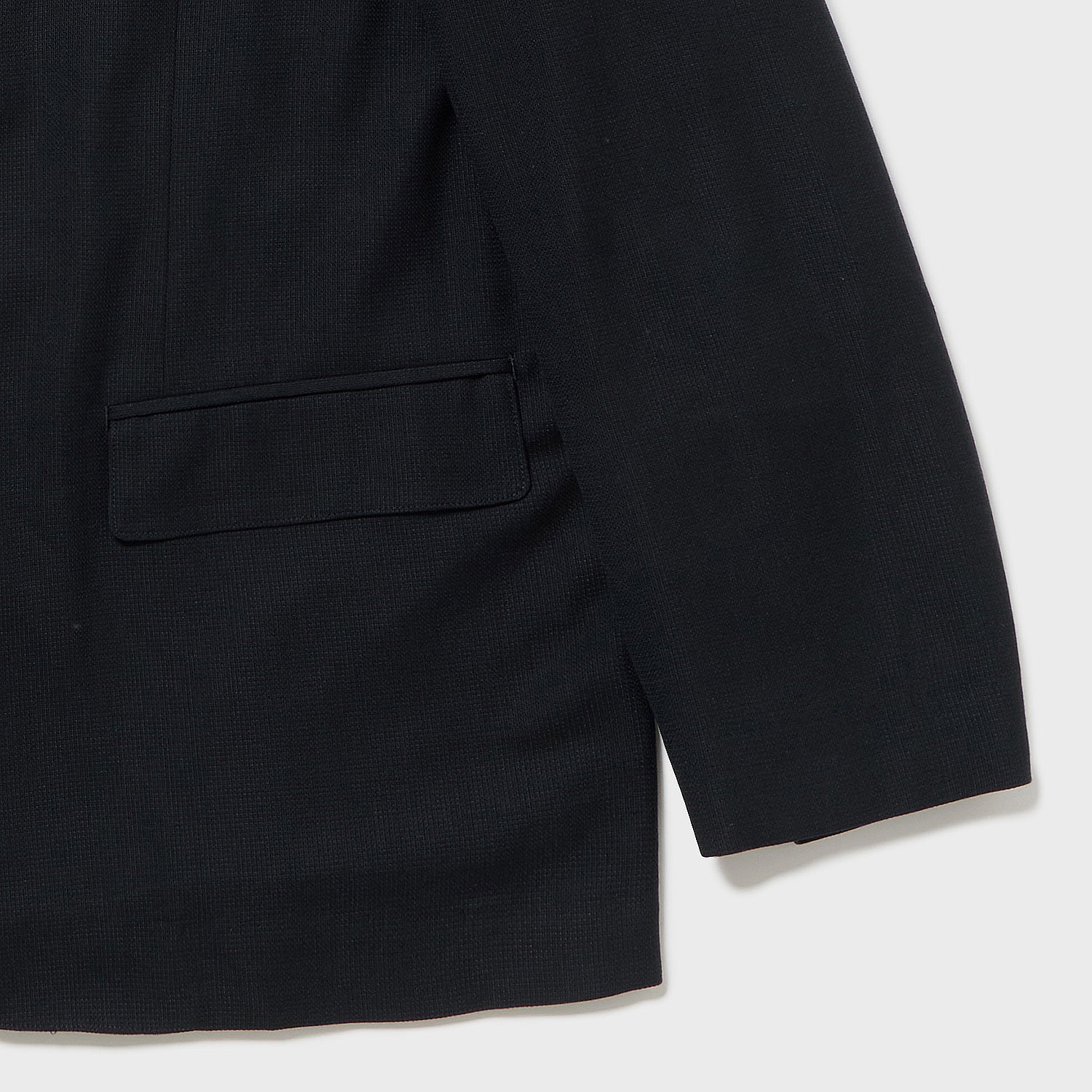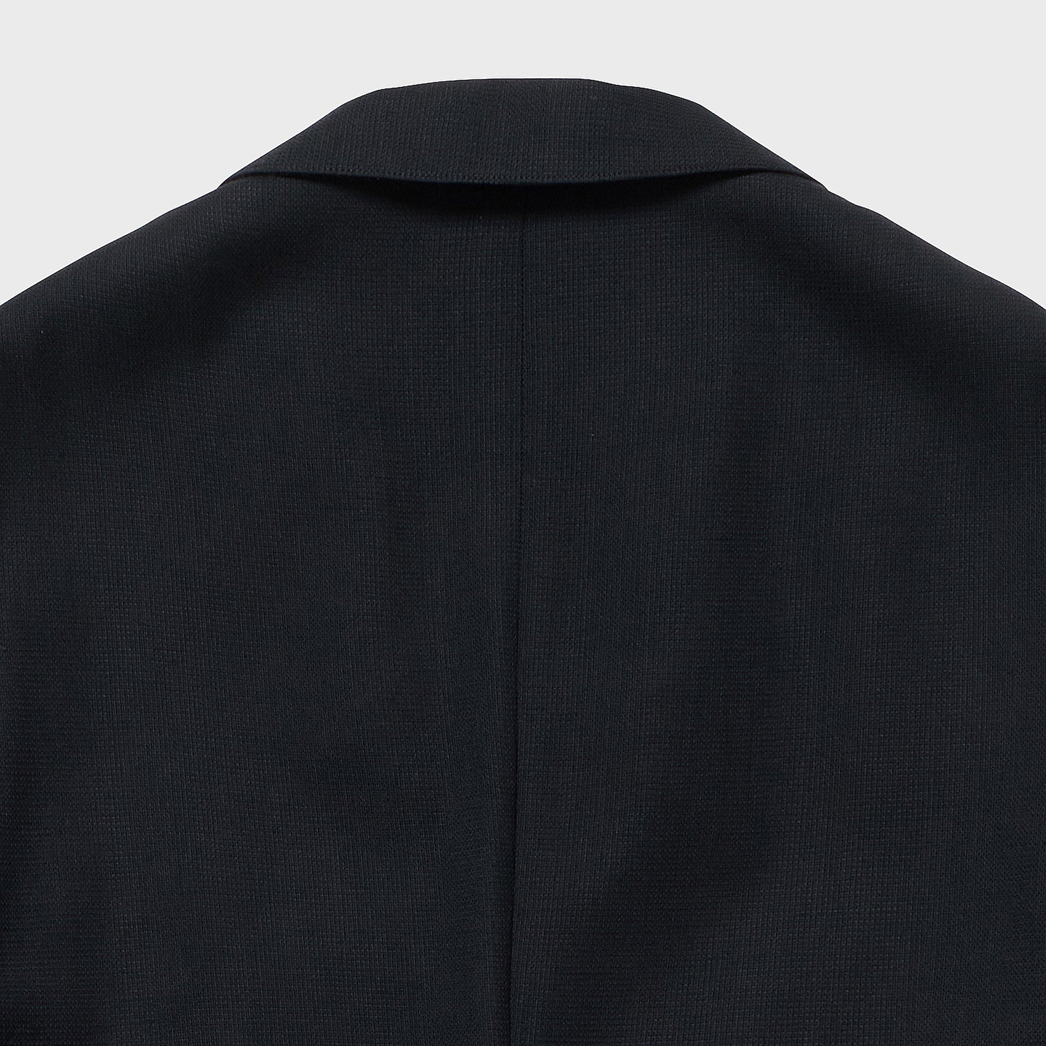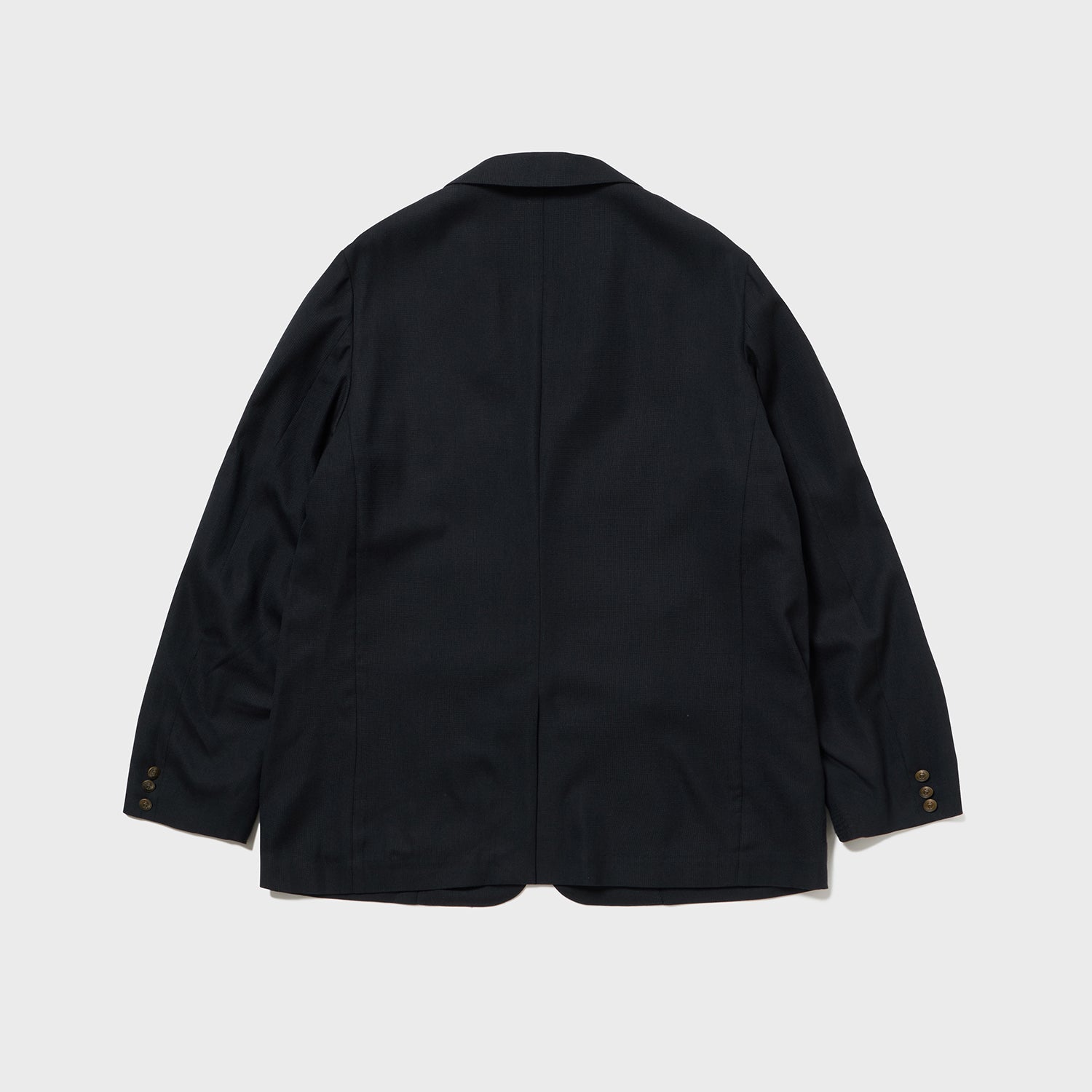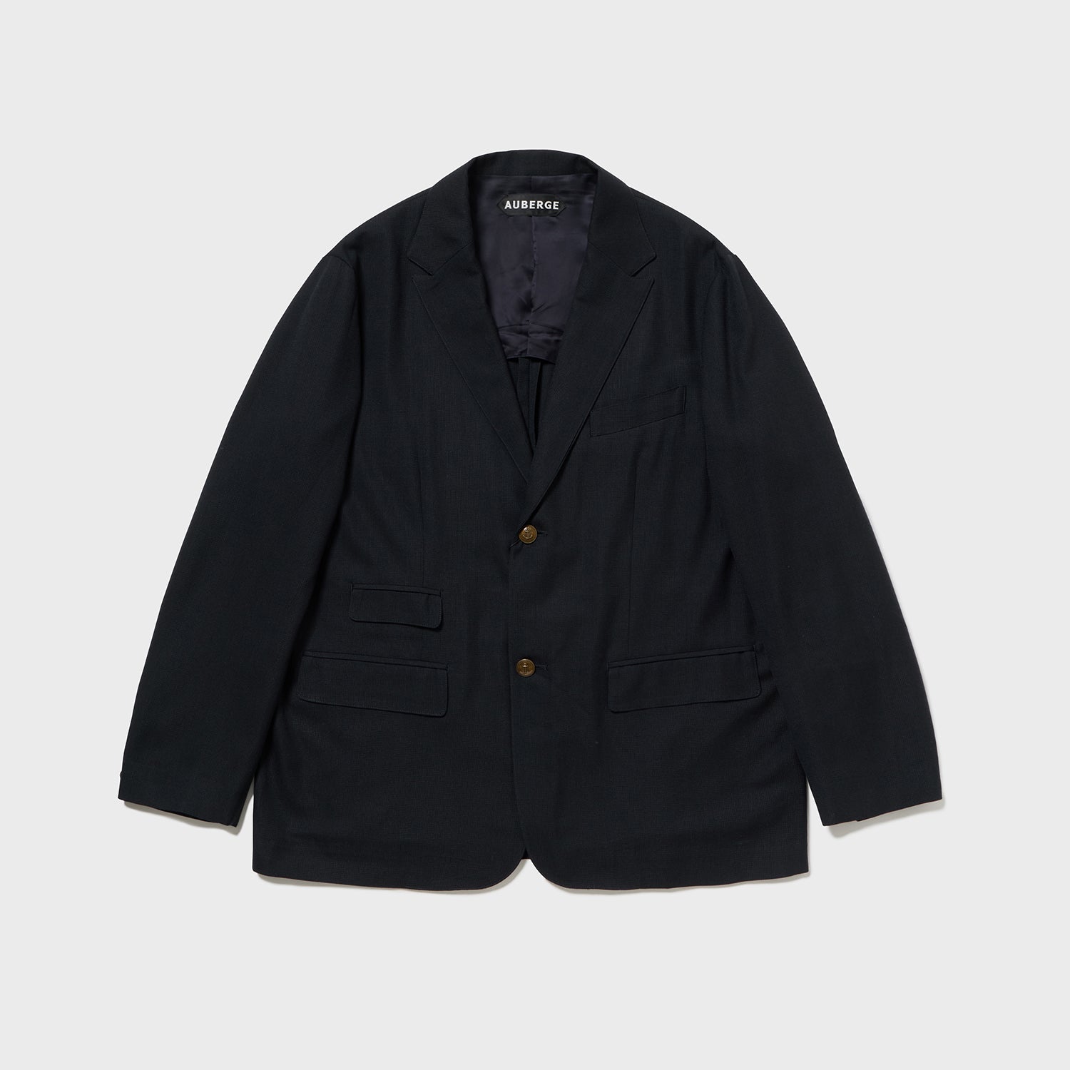 ややゆったりした肩回りのボックス型テーラードJK。着丈はやや長めのナローなシルエット。セミ―ピークドラペルと、フィッティングのカジュアル感がいまどき風