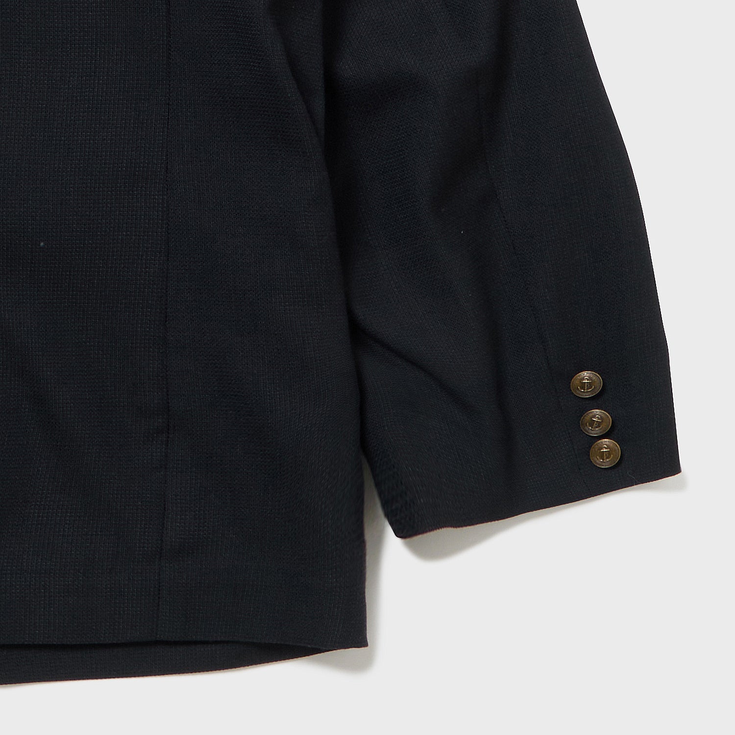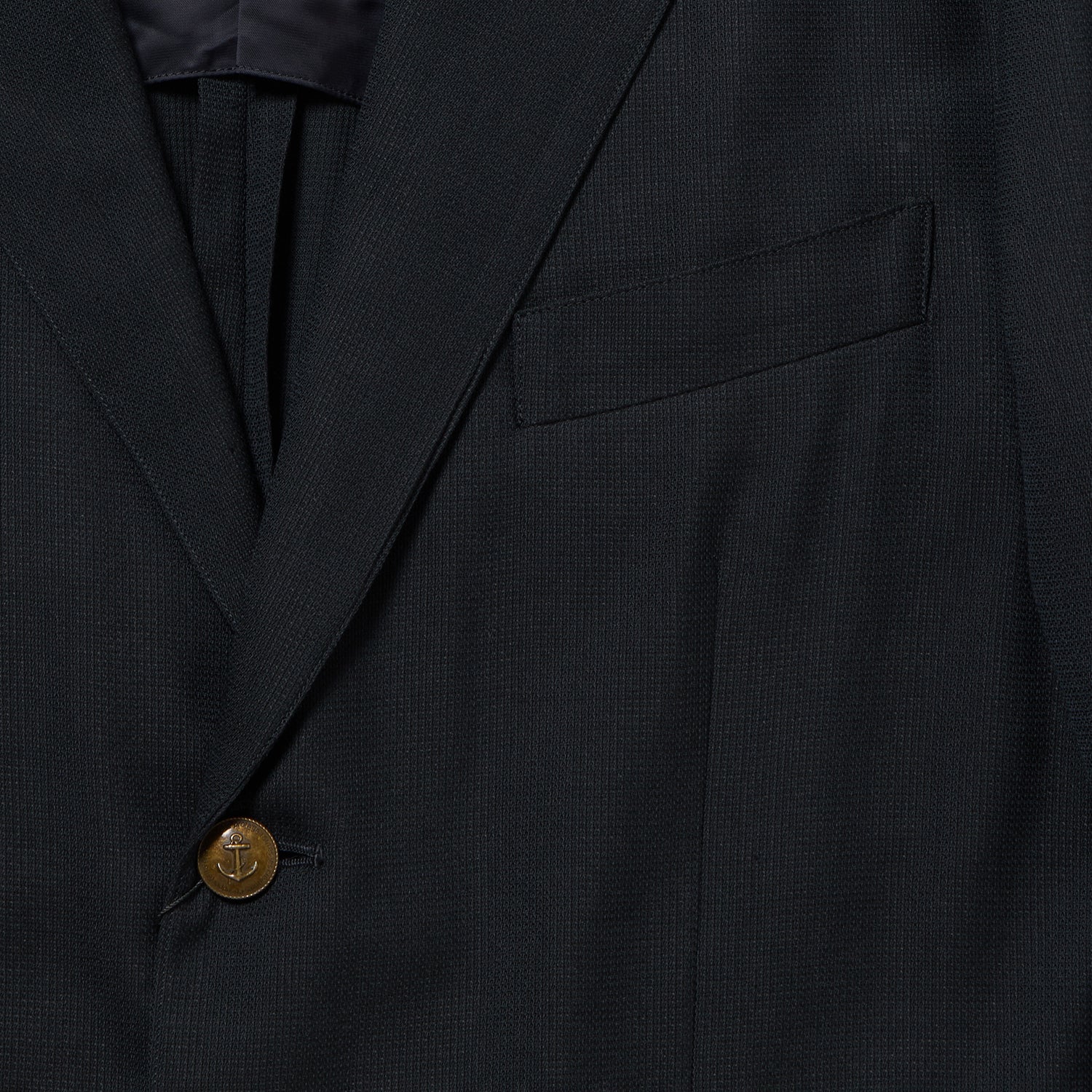 春夏用の紺ブレ、ネイビーセットアップをイメージして、熱帯素材と言えばのヴィンテージ、英40年代のパナマクロスをスーパー140'Sウールとシルクで作ってみました。ブッシュジャケットやグルカパンツなどの夏アイテムにピッタリなメッシュ調のサラサラタッチとシルクのオチ感が気持ちの良い1着です。