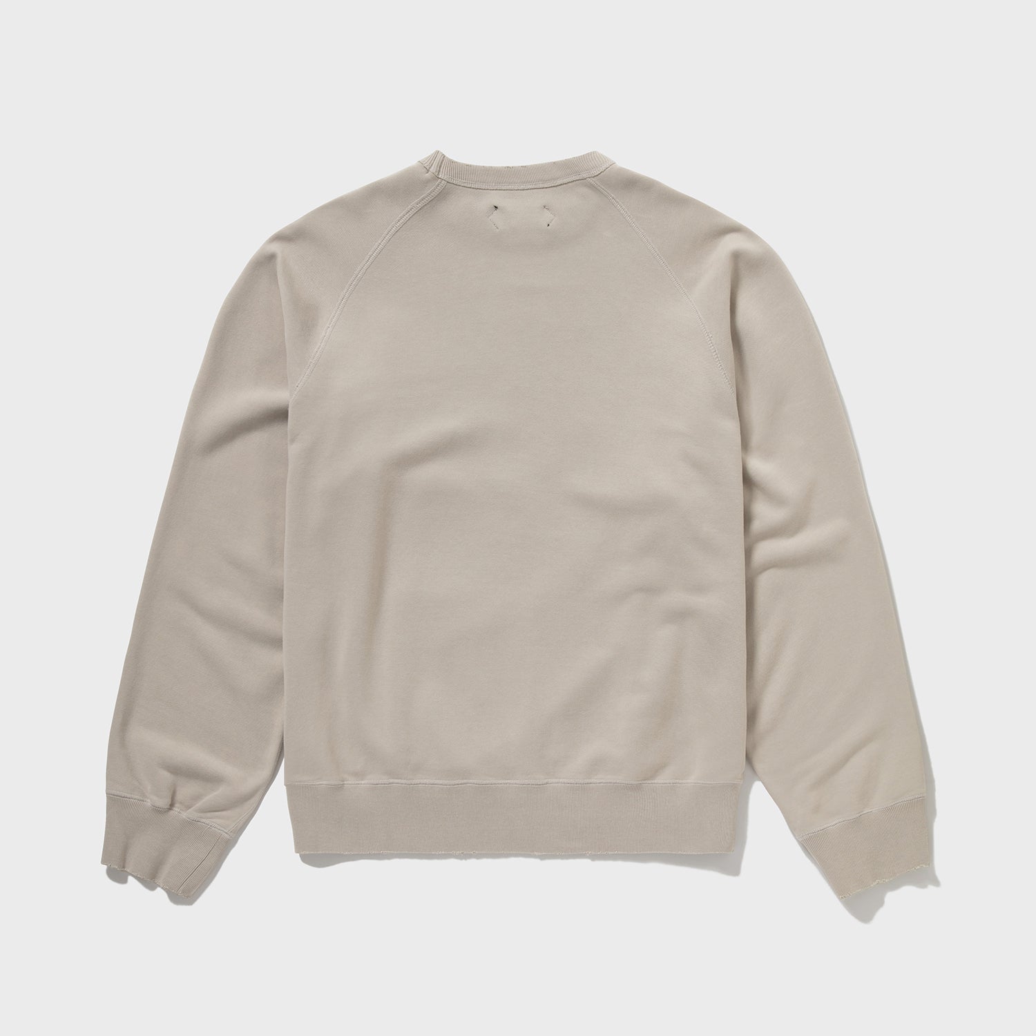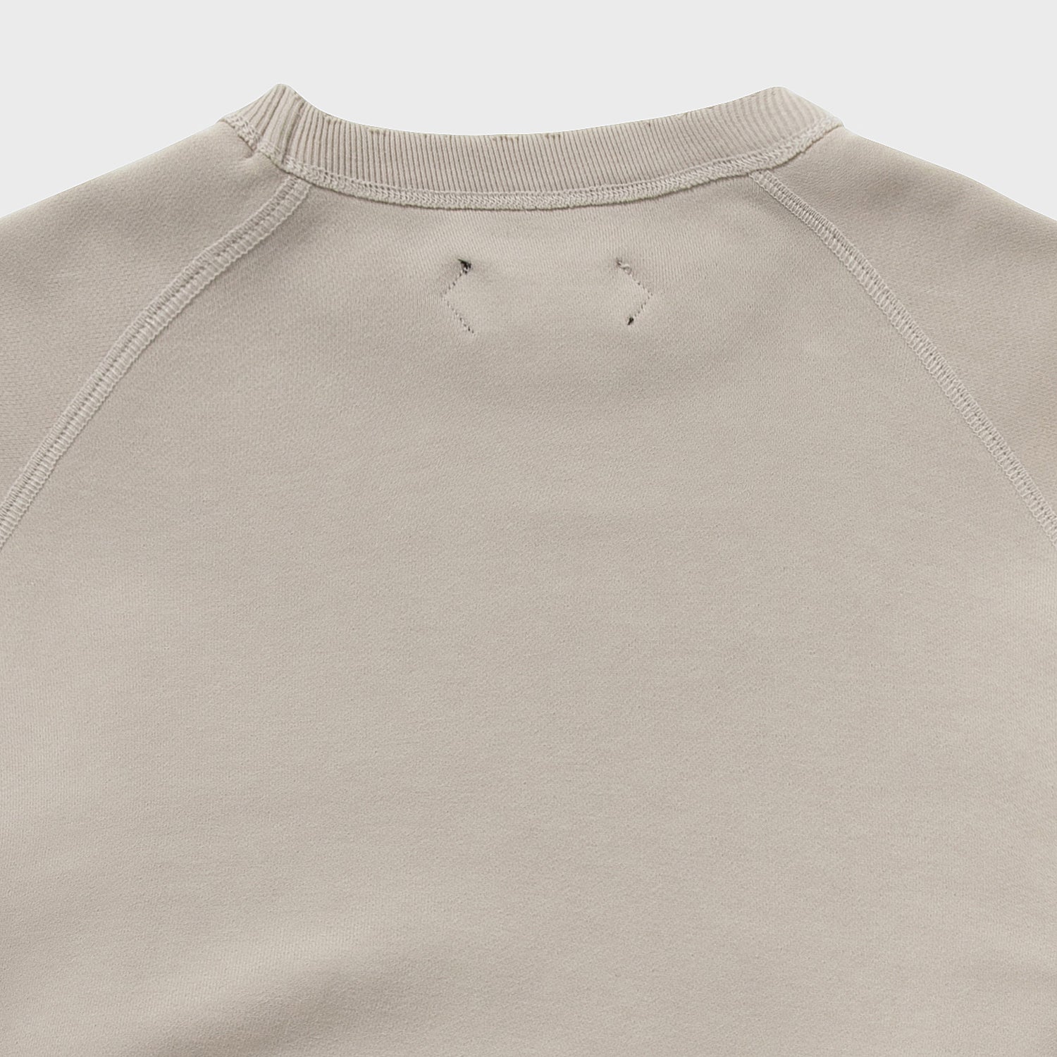 ヴィンテージ目指しのシンカー編み裏毛素材。裏ループが立つよう、あたかも吊り裏毛のような風合い出しに成功した素材。