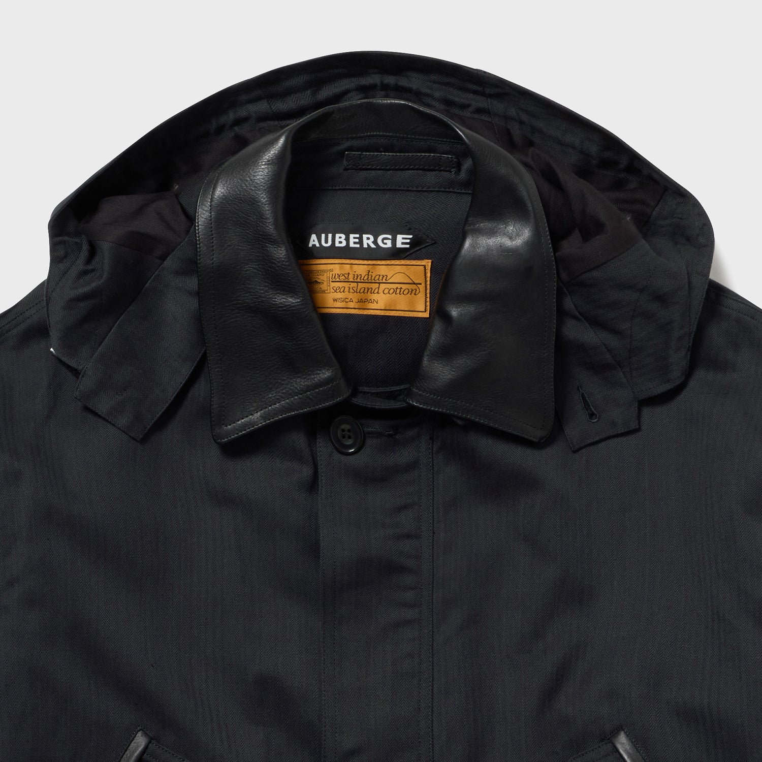 上衿には、イタリア・トスカーナ産のベジタブルタンニン鞣し牛革を使用しています。