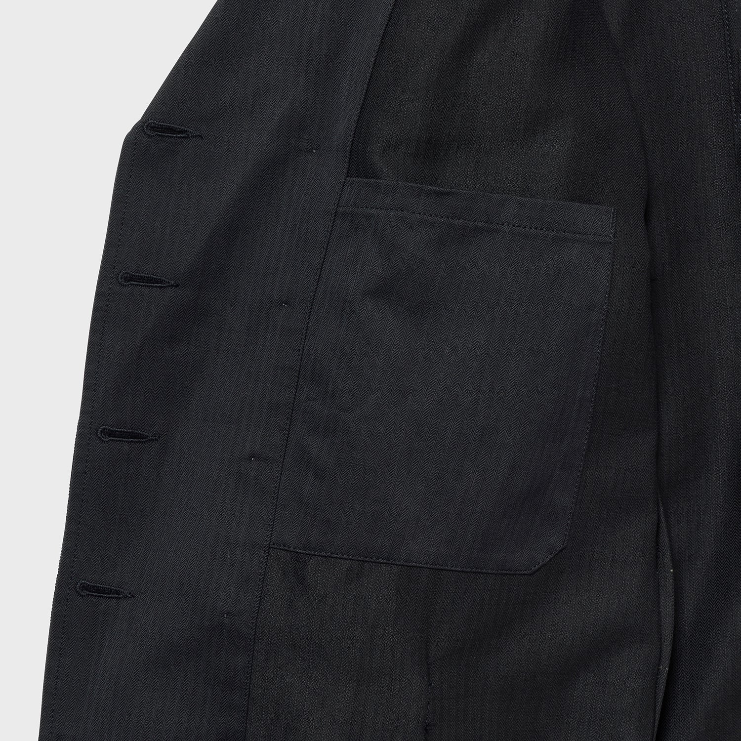 また、ラペル下側がボタンで留まるのも、象徴的なディテールです。