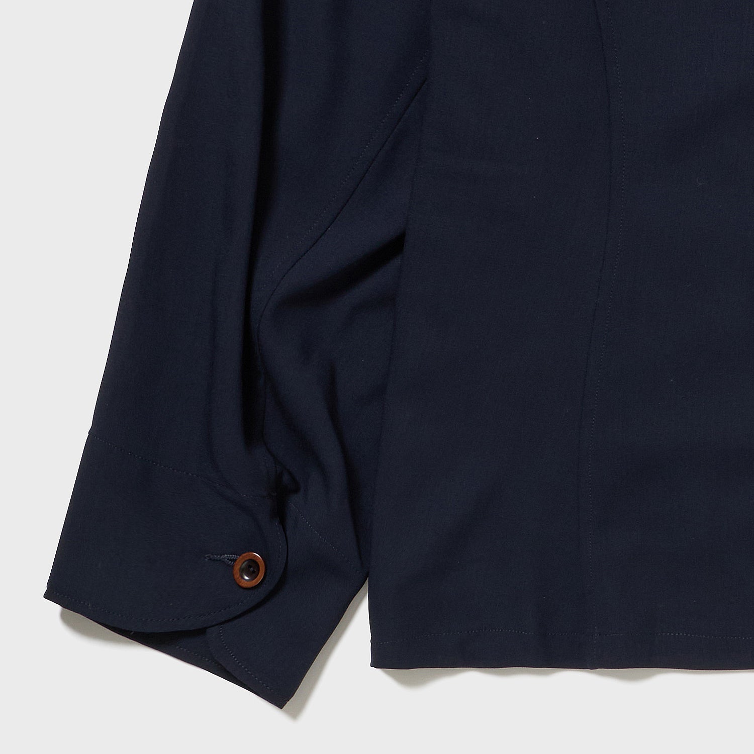 スーパー140’Sをウォッシャブル加工し、そこから強撚糸を作り、2×1綾組織でギャバジンに仕立てました。