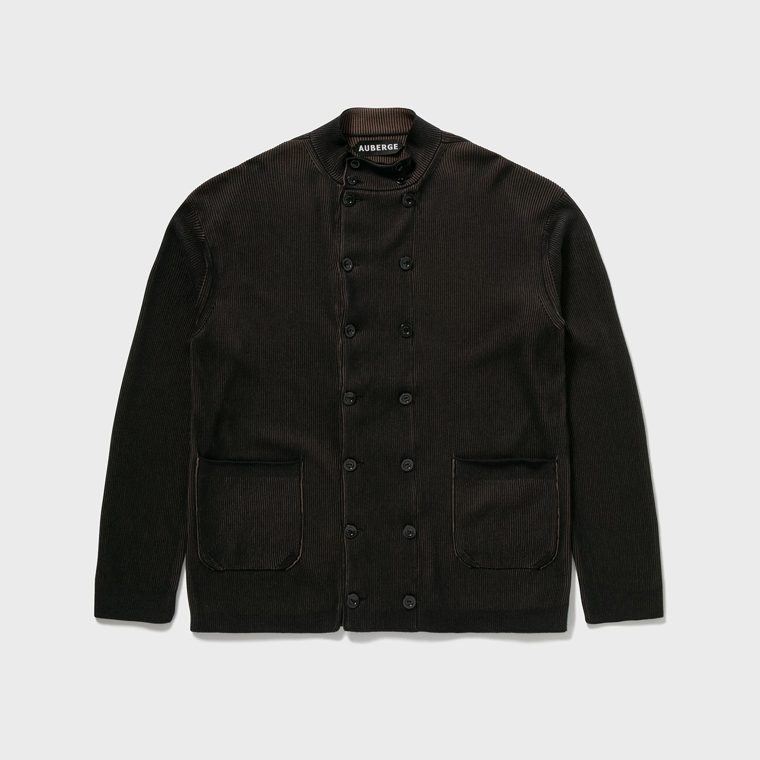 コットン100%糸を強撚加工し、ややざらっとしたタッチの両畦成形編み。日本には編機のメーカーで圧倒的なシェアを持つ島精機製作所で試したが、100年前の度目にどうしても到達することができず、最後の切り札、ドイツ・ストール社の畦編機で今回ようやくヴィンテージのシッカリ感まで持ち込むことに成功した。