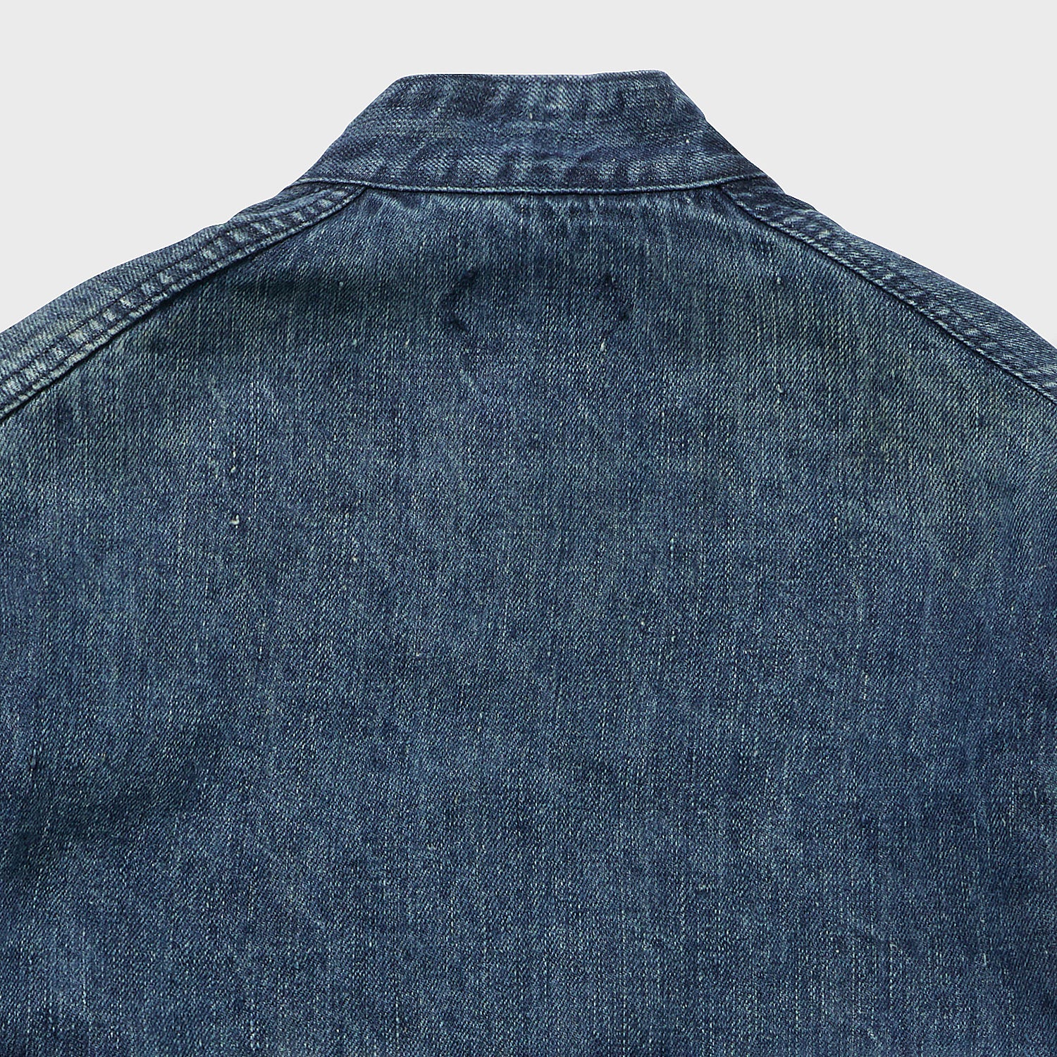 麻原料+インディゴの生地はアメリカにはあまり流通しておらず、フランス、ヨーロッパが19世紀まではメインであったことから、UKワークウエア界の異端児「Fabram」社のスタンドカラーセットアップをイメージ致しました。イギリス独特のワークでありながら前に振る袖もしっかり型紙に反映しております。